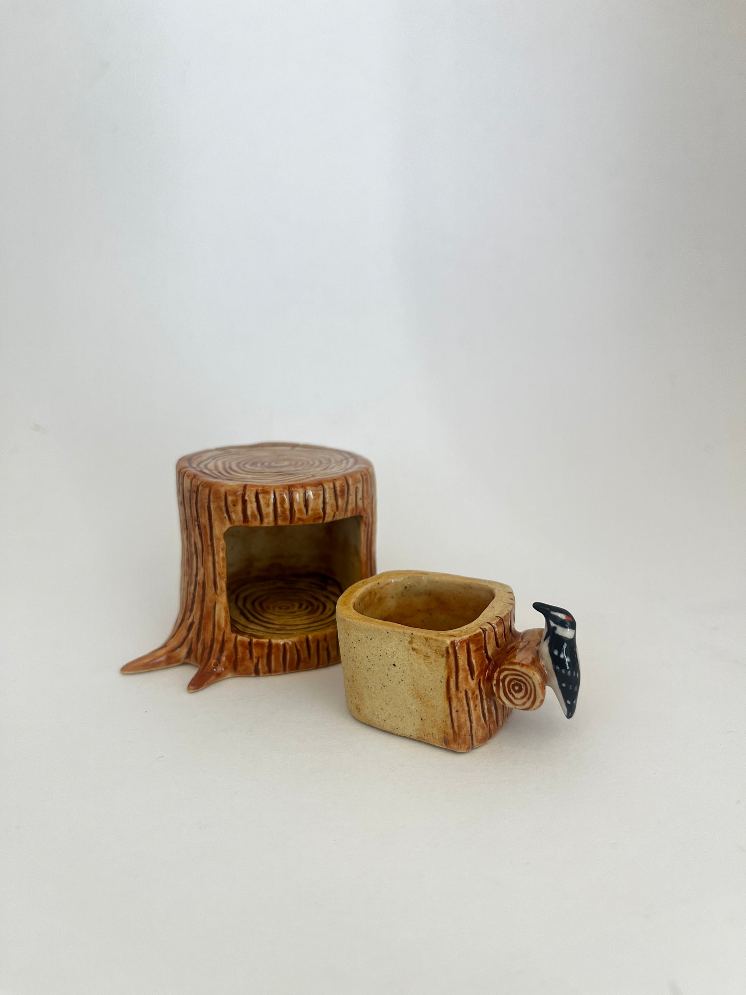 A piece from my Tree Stump series and my first drawer piece - featuring a hairy (or is it a downy...) woodpecker guarding your jewels!