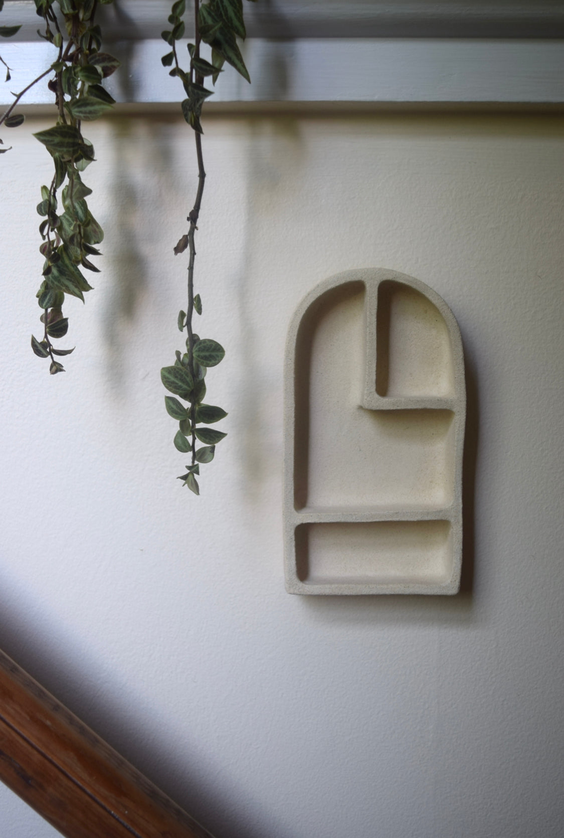 Bare stoneware paired with a hand built design, this wall shelf is the perfect home for a curation of treasures.